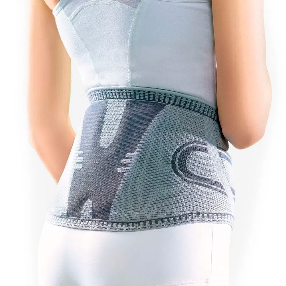 Tecido em H: O tecido de alta densidade em forma de H com pad de silicone interno proporciona o aumento da estabilidade paravertebral, oferecendo a compressão ideal para o alívio da dor e ajudando a manter a curvatura normal da coluna lombar.